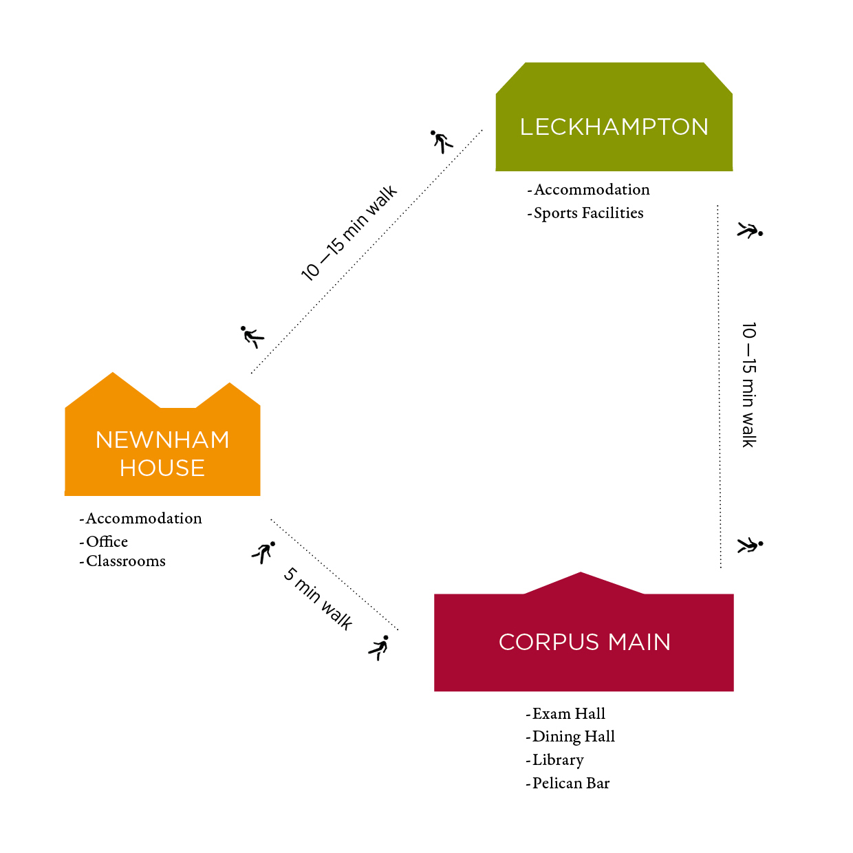 Unterricht, Unterkunft und Speisesaal befinden sich in verschiedenen College-Gebäuden, die alle bequem zu Fuß erreichbar sind.